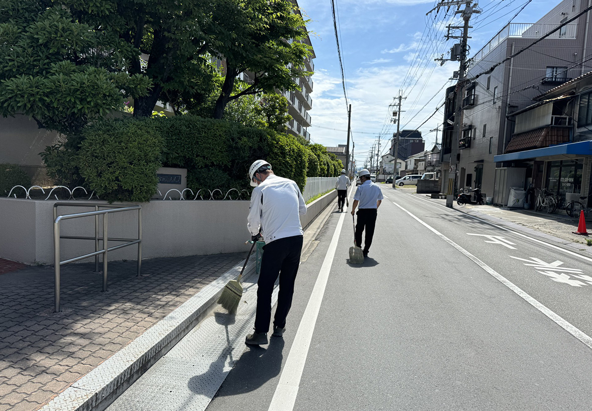 会社・工場周辺での清掃ボランティア活動、毎月清掃しています。